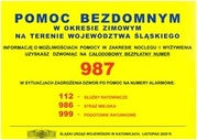 W okresie zimowym, gdy temperatura spada poniżej zera, mundurowi nie pozostają obojętni na los osób potrzebujących pomocy, szczególnie tych narażonych na zamarznięcie. Policjanci, w czasie różnych interwencji i kontroli miejsc, gdzie przebywają bezdomni, informują ich o możliwości skorzystania z różnego rodzaju noclegowni. Śląski Urząd Wojewódzki w Katowicach, wzorem lat ubiegłych, 1 listopada uruchomił bezpłatną infolinię, gdzie bezdomni mogą uzyskać pomoc w zakresie noclegu i wyżywienia.