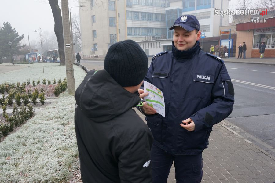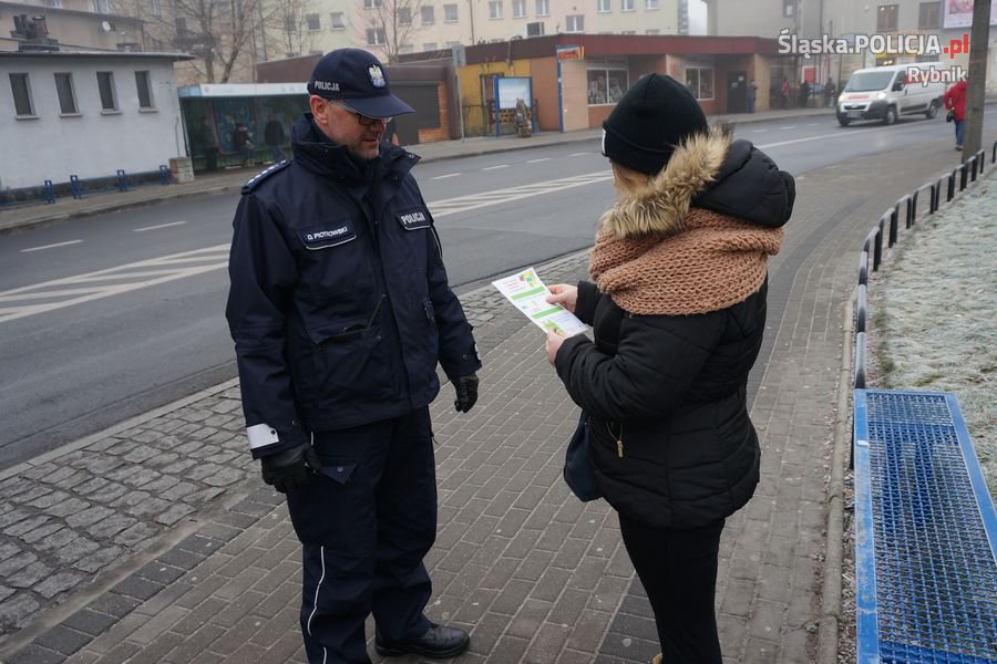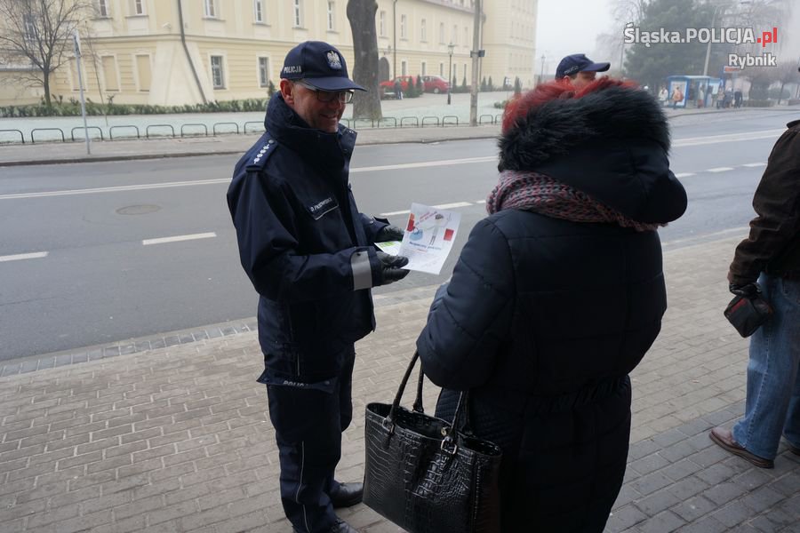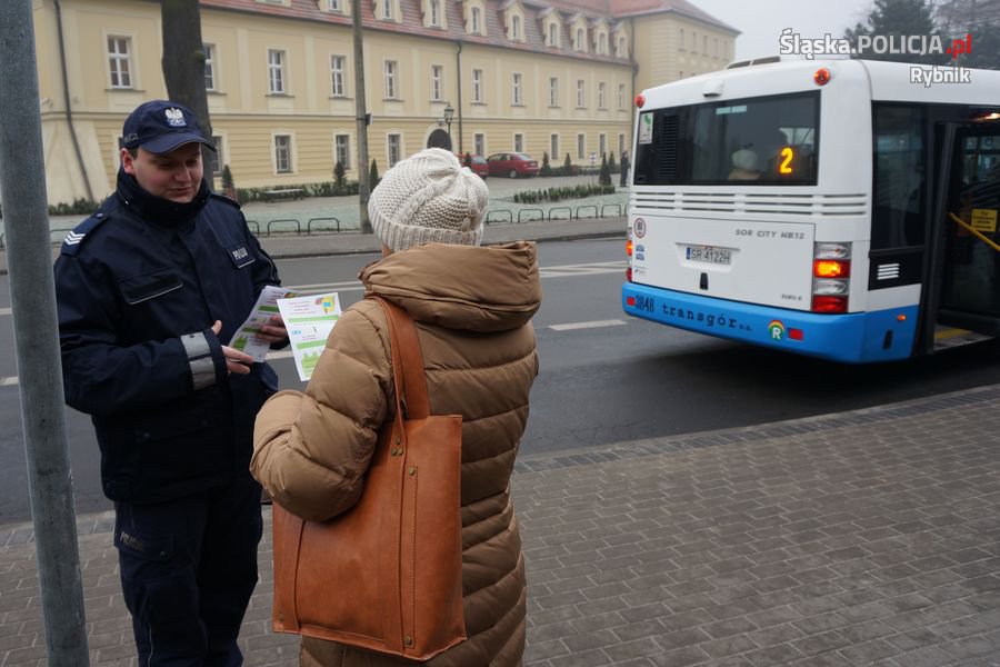 Wczoraj przed południem mieszkańcy Rybnika mogli w okolicy przystanków autobusowych spotkać policjantów, którzy wraz z życzeniami zdrowych i bezpiecznych świąt, wręczali napotkanym osobom ulotki ostrzegające przed kieszonkowcami. Dbając o bezpieczeństwo pieszych, mundurowi przypominali również o noszeniu odblasków oraz zachęcali, aby z odblasków korzystać zawsze, a nie tylko w sytuacji, gdy za ich brak grozi mandat.