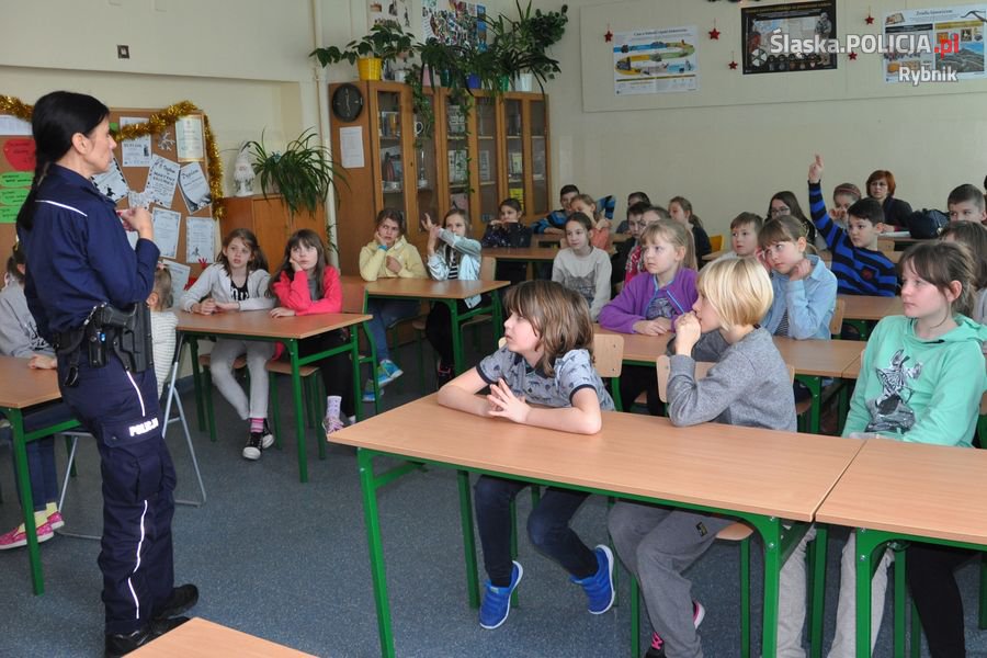Sierż. Katarzyna Musiolik z rewiru dzielnicowych rybnickiej komendy, została zaproszona do odwiedzenia dzieci ze Szkoły Podstawowej nr 34 w Rybniku. Podczas spotkania, policjantka przypomniała uczniom klasy IV i V o najważniejszych zasadach bezpiecznych zachowań, a także uczyła dzieci, jak bezpiecznie poruszać się po drodze. Zwracała uwagę na zagrożenia płynące z nierozsądnego postępowania oraz zagrożeń z jakimi młody człowiek może się zetknąć podczas zimowego wypoczynku. Młodzi mieszkańcy Rybnika dowiedzieli się także, jak być widocznym na drodze po zmroku, o czym należy pamiętać podczas zabaw na śniegu i lodzie, a także gdzie bezpiecznie jest uprawiać sporty zimowe. Nie zabrakło również porad w jaki sposób bezpiecznie spędzać ferie w domu. Dzielnicowa przypomniała najmłodszym, żeby korzystając z komputera nie nawiązywały znajomości z obcymi i nie podawały swojego adresu zamieszkania. Spotkanie przeprowadzone w ramach akcji „Bezpieczne Ferie 2017”, obejmowało również zagadnienia kampanii "Daj Znak", "Rok Pieszego" i elementy kampanii "Z Młodym Kierowcą w Drodze po Doświadczenie".