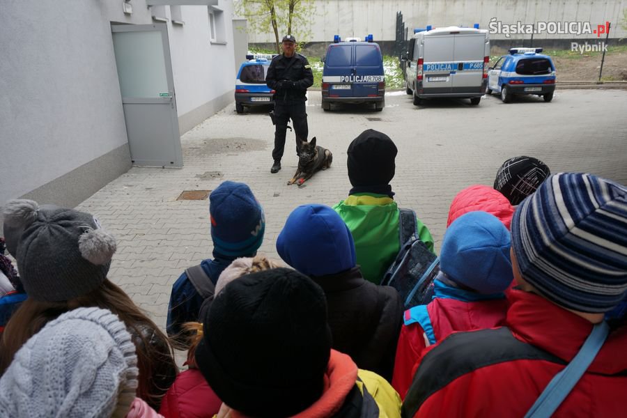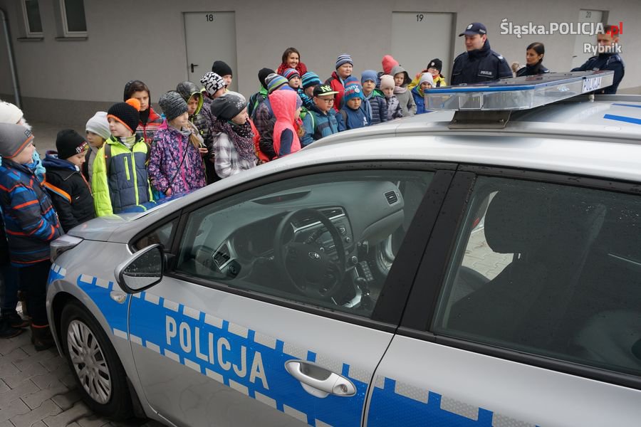 Policjantów pełniących służbę w rybnickiej komendzie odwiedzili uczniowie z Zespołu Szkolno-Przedszkolnego Nr 4 w Rybniku. Dzieci z zaciekawieniem wysłuchały porad przewodnika psa, prelekcji na temat bezpieczeństwa w ruchu drogowym oraz cyberprzemocy. Nasi goście mieli okazję zobaczyć policyjne stanowisko kierowania, sprzęt jaki jest na wyposażeniu Policji, a także zasiąść za kierownicą radiowozu. Dzielnicowi zaprezentowali dzieciom aplikację „Moja Komenda” która ułatwia dotarcie do policjantów.