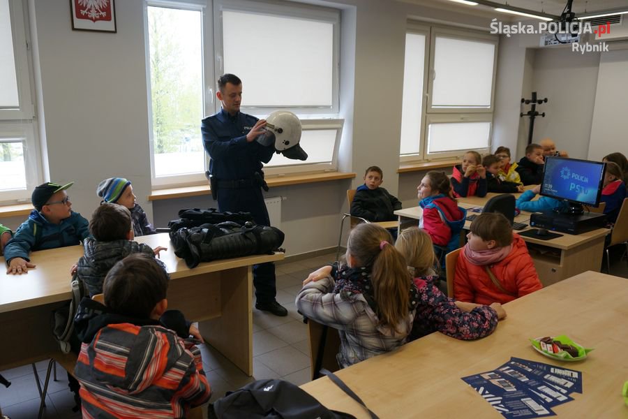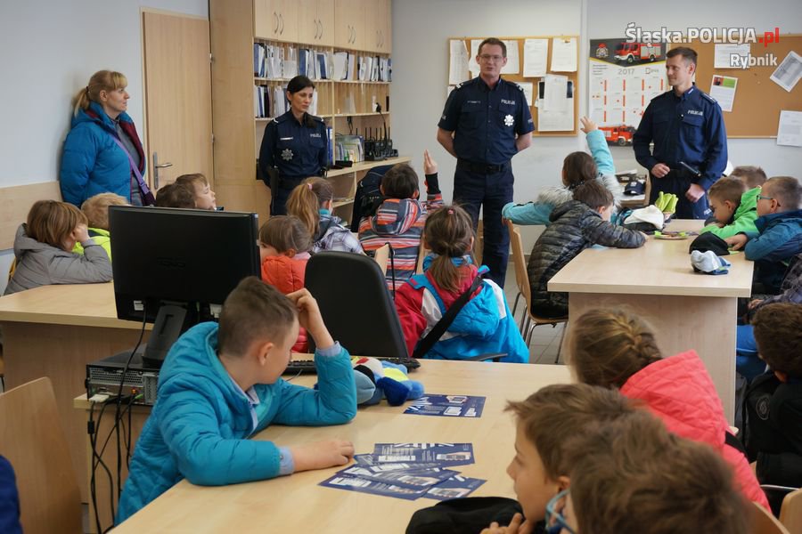 W czasie spotkania z dzielnicowymi - mł. asp. Wojciechem Pielczykiem i sierż. Katarzyną Musiolik, dzieci z Zespołu Szkolno-Przedszkolnego Nr 4 w Rybniku, zwiedziły budynek rybnickiej komendy. Trzecioklasiści zobaczyli dyżurkę – najważniejsze miejsce każdej jednostki Policji oraz przyjazny pokój. Nasi mili goście podczas wycieczki w komendzie spotkali się z policjantami różnych wydziałów, którzy opowiedzieli im na czym polega ich praca.