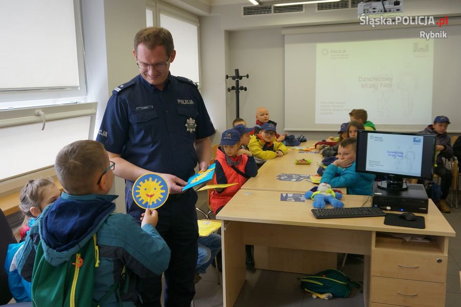Dzielnicowa sierż. Katarzyna Musiolik rozmawiała z najmłodszymi o bezpiecznym korzystaniu z internetu i cyberprzemocy. W ramach programu „Dzielnicowy bliżej nas” opowiedziała dzieciom na czym polega praca dzielnicowego i przypominała, że dzieci mogą zaufać policjantom i zawsze poprosić ich o pomoc. Przy tej okazji dzielnicowa zaprezentowała dzieciom nową aplikację „Moja Komenda” która ułatwia dotarcie do komisariatu i kontakt z dzielnicowym, tak aby dzieci zachęcały rodziców do jej zainstalowania na swoich telefonach, a w przyszłości same z niej korzystały. Zaprezentowała także „Krajową mapę zagrożeń bezpieczeństwa”.
