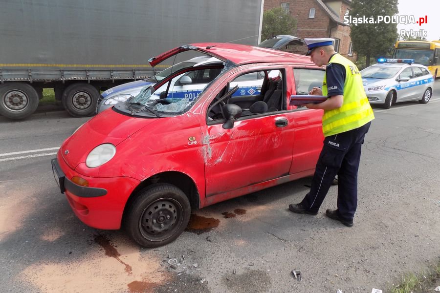 Do wypadku doszło wczoraj około godziny 13.30 na skrzyżowaniu ulicy Furgoła z ulicą Armi Krajowej w Czerwionce-Leszczyny. Jak wstępnie ustalili mundurowi, kierujący oplem – 83-letni mężczyzna, wyjeżdżając z ulicy Armii Krajowej, nie ustąpił pierwszeństwa przejazdu i zderzył się z prawidłowo jadącym w kierunku Stanowic daewoo. W wyniku tego zdarzenia samochód wywrócił się na lewy bok. Aby wyciągnąć poszkodowaną z samochodu, potrzebna była pomoc strażaków. Kobieta z obrażeniami ciała została przewieziona do rybnickiego szpitala. Uczestnicy zdarzenia byli trzeźwi. Policjanci zatrzymali uprawnienia do kierowania kierującemu oplem. Dokładne okoliczności wypadku zostaną wyjaśnione w prowadzonym przez rybnickich śledczych, postępowaniu przygotowawczym.