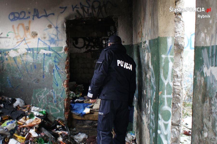 Zimą rybniccy policjanci na bieżąco sprawdzają miejsca, gdzie mogą przebywać osoby szukające schronienia. Nie bez znaczenia są dla nas również sygnały od mieszkańców i to nie tylko te przekazywane osobiście czy telefonicznie, ale także te, przesyłane za pośrednictwem Krajowej Mapy Zagrożeń Bezpieczeństwa. Powodem zagrożenia życia osób bezdomnych oraz samotnie mieszkających bywa nie tylko ujemna temperatura, ale także pożar lub zatrucie tlenkiem węgla. Każdego roku w tym okresie odnotowuje się wiele przypadków zgonów osób, szczególnie bezdomnych i samotnych, których przyczyną jest nadmierne wychłodzenie organizmu. Policjanci troszczą się też o osoby, które przebywają w miejscach zabronionych, gdzie może dojść do zagrożenia ich życia i zdrowia. Bezdomni nie zważają na to, że większość budynków (pustostanów) przeznaczonych jest do likwidacji i przebywanie w nich bezpośrednio zagraża ich życiu i zdrowiu ze względu na ich stan techniczny.