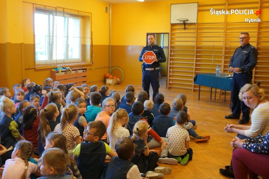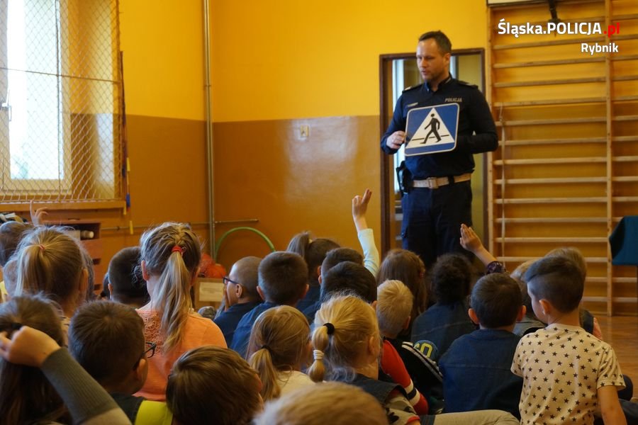 Rybniccy policjanci w ramach akcji „Kręci nas bezpieczeństwo... przez cały rok szkolny” organizują spotkania z najmłodszymi. Tym razem policjanci ruchu drogowego przeprowadzili prelekcję o bezpiecznym poruszaniu się po drogach dla uczniów ze Szkoły Podstawowej nr 35. W pogadance wykorzystano specjalny furgon profilaktyczno-edukacyjny z Komendy Wojewódzkiej Policji w Katowicach.