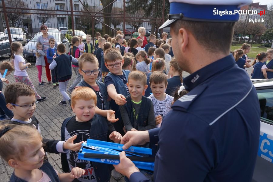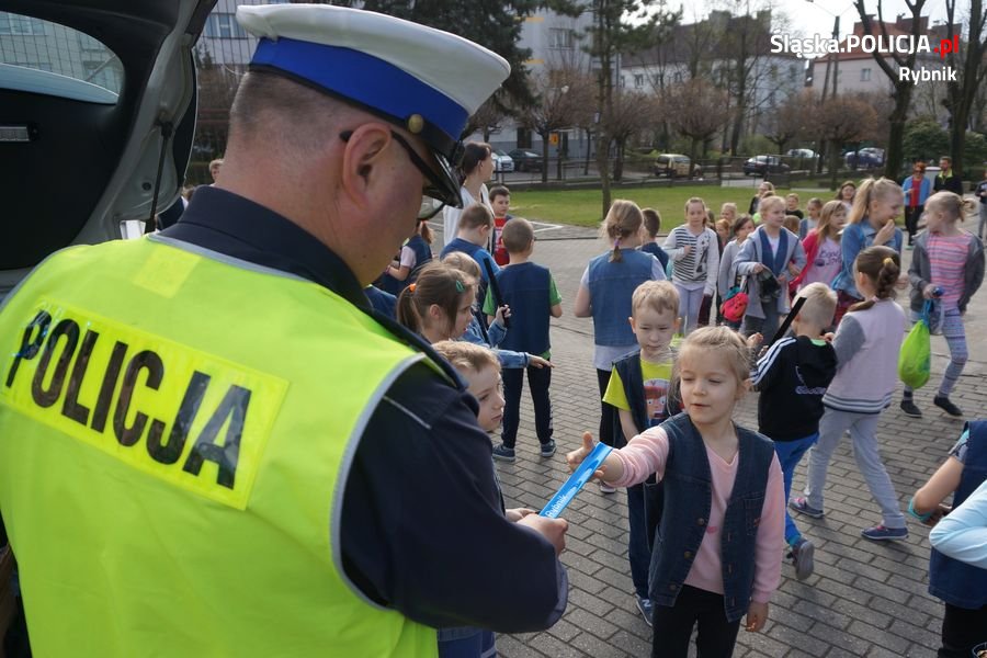 Policjanci ruchu drogowego rybnickiej komendy i Komendy Wojewódzkiej Policji w Katowicach odwiedzili wczoraj uczniów ze Szkoły Podstawowej nr 35 w Rybniku. Mundurowi przekazali młodym rybniczanom wiele cennych wskazówek dotyczących bezpieczeństwa tzw. niechronionych uczestników ruchu drogowego. Dzieci poznały zasady przechodzenia przez oznakowane i nieoznakowane przejścia dla pieszych. Dowiedziały się także, jak należy zachować się na przejściach wyposażonych w sygnalizację świetlną i którą stroną drogi iść, gdy nie ma chodnika. Policjanci rozmawiali też z dziećmi o bezpieczeństwie podczas jazdy na rowerze, a także przypomnieli o podstawowym wyposażeniu roweru. Po zakończeniu części teoretycznej, nastąpiła część praktyczna. Dzieci pod czujnym okiem policjanta ruchu drogowego, przechodziły przez oznakowane przejście dla pieszych, znajdujące się w rejonie ich szkoły. Podczas zajęć wykorzystano furgon profilaktyczno-edukacyjny, który na swoim wyposażeniu posiada m.in. rowery, przedmioty umożliwiające stworzenie profesjonalnego miasteczka ruchu drogowego, sprzęt multimedialny promujący bezpieczeństwo w ruchu drogowym oraz rowerowy tor przeszkód. Na zakończenie spotkania najmłodsi mieli okazję z bliska zobaczyć policyjny radiowóz. Każdy z uczestników dostał od policjantów opaskę odblaskową. Przypomnienie podstaw poruszania się na drodze i w jej rejonie przyda się najmłodszym uczestnikom ruchu drogowego szczególnie teraz, kiedy słoneczne dni sprzyjają spacerom i rowerowym wycieczkom.