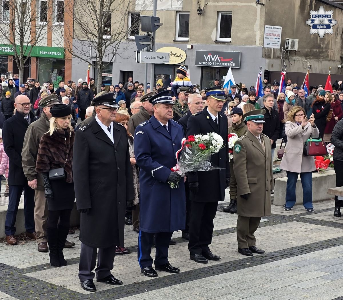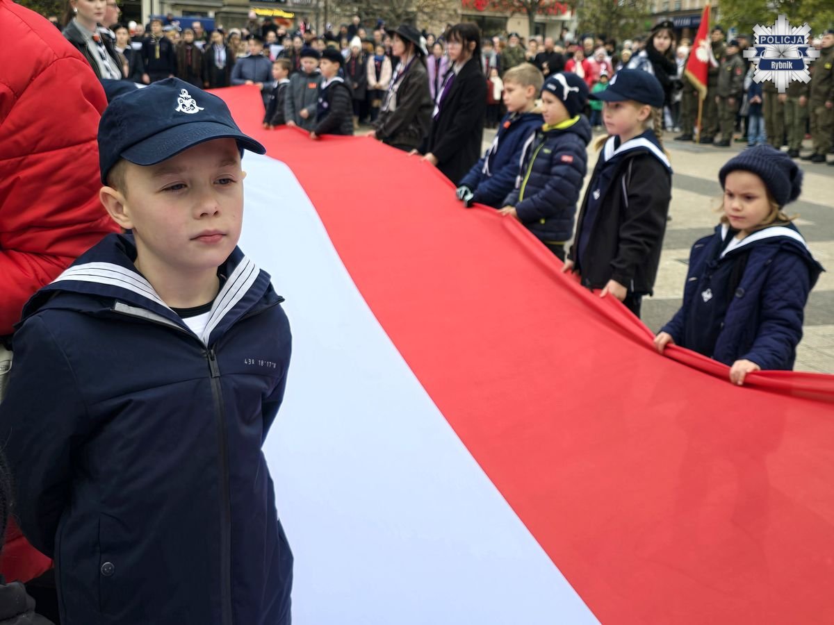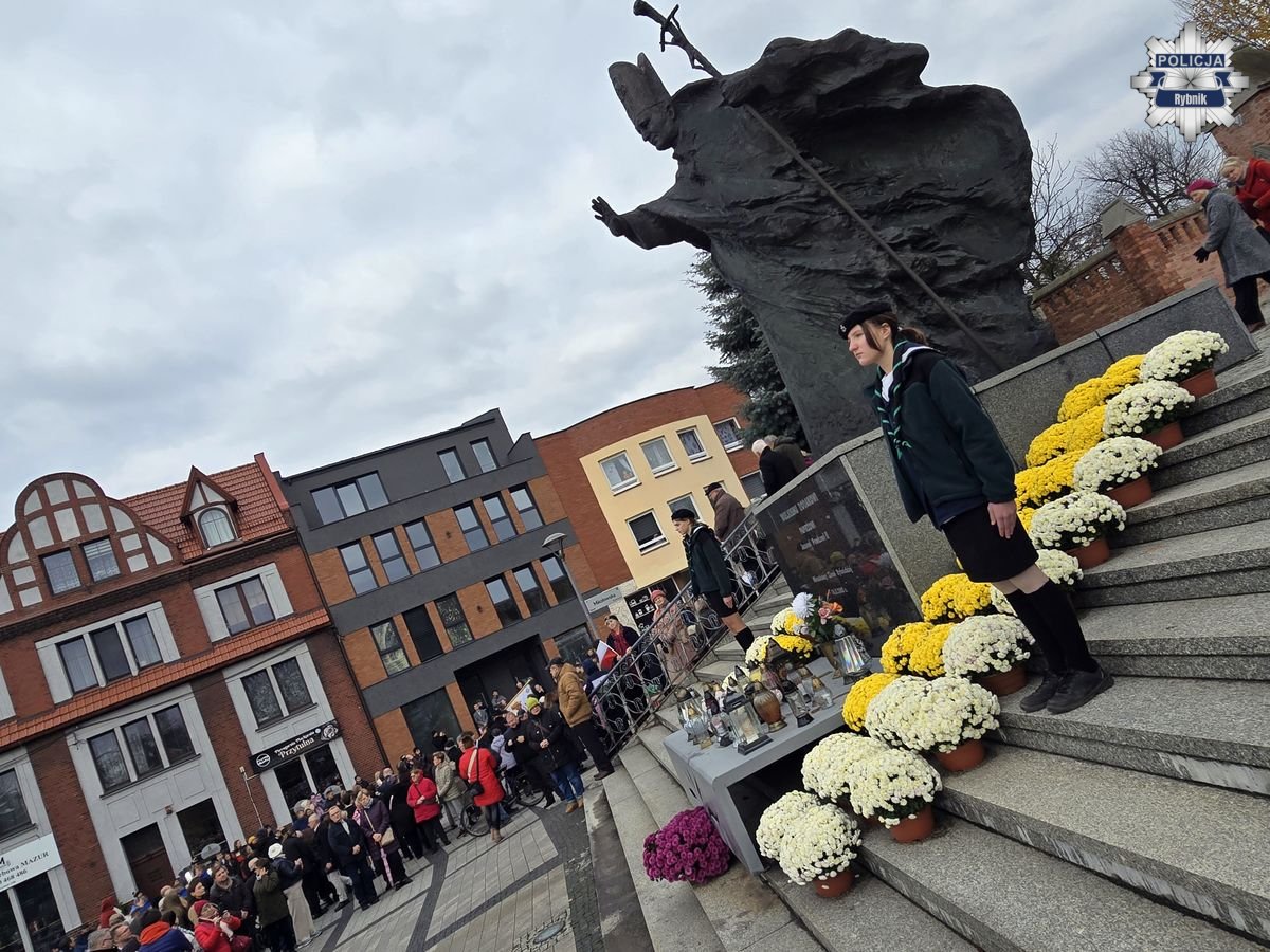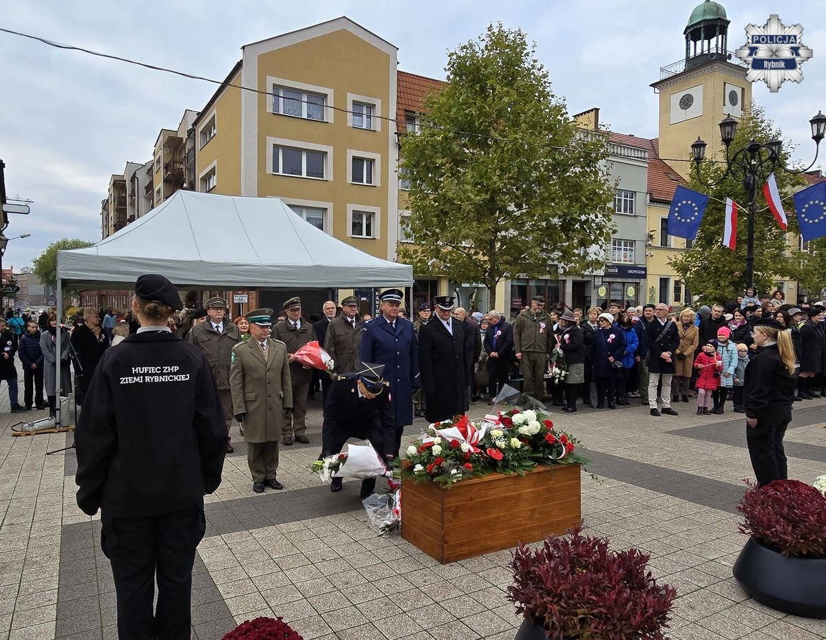Rybnickie obchody Święta Niepodległości przebiegały według tradycyjnego porządku. Po mszy za Ojczyznę w bazylice św. Antoniego, której przewodniczył ks. Marek Noras, prezydent Miasta Rybnika — Piotr Kuczera i jego najbliżsi współpracownicy, a także parlamentarzyści, radni oraz delegacje organizacji społecznych i branżowych złożyli kwiaty pod pomnikiem papieża-Polaka św. Jana Pawła II. W uroczystych obchodach uczestniczyli przedstawiciele służb mundurowych. Podczas uroczystości rybnicką komendę reprezentował Komendant Miejski Policji w Rybniku — inspektor Arkadiusz Więcek. W uroczystościach udział wzięli także przedstawiciele szkół, oraz licznie zgromadzeni mieszkańcy. Na miejskie obchody przybyło wiele rodzin z dziećmi, aby wspólnie uczcić ten wyjątkowy dzień i okazać szacunek dla polskiej tradycji i historii.