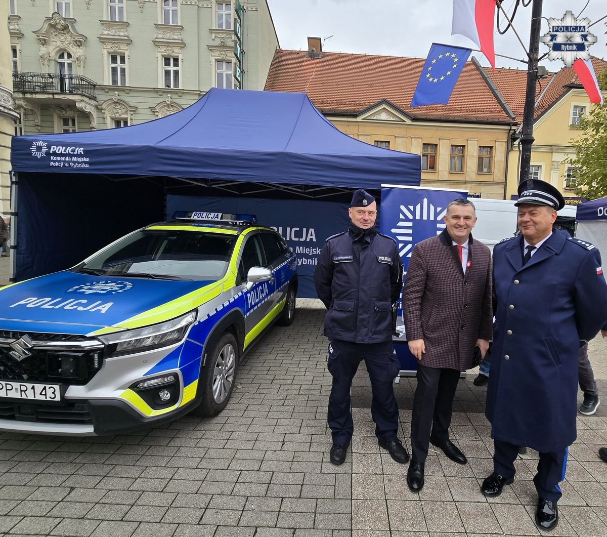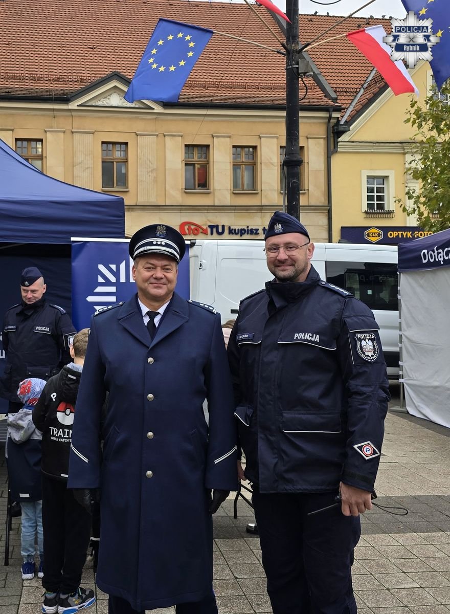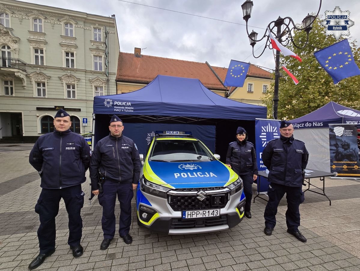 Na rynku znajdował się także policyjny namiot, w którym można było spotkać mundurowych i porozmawiać z nimi zarówno o służbie, jak i o obchodzonym święcie. Młodzi mieszkańcy miasta mieli okazję zobaczyć z bliska radiowóz, a nawet do niego wsiąść. Atrakcja ta cieszyła się dużym zainteresowaniem. Nie brakowało uśmiechów na twarzy zarówno policjantów, jak i mieszkańców Rybnika.