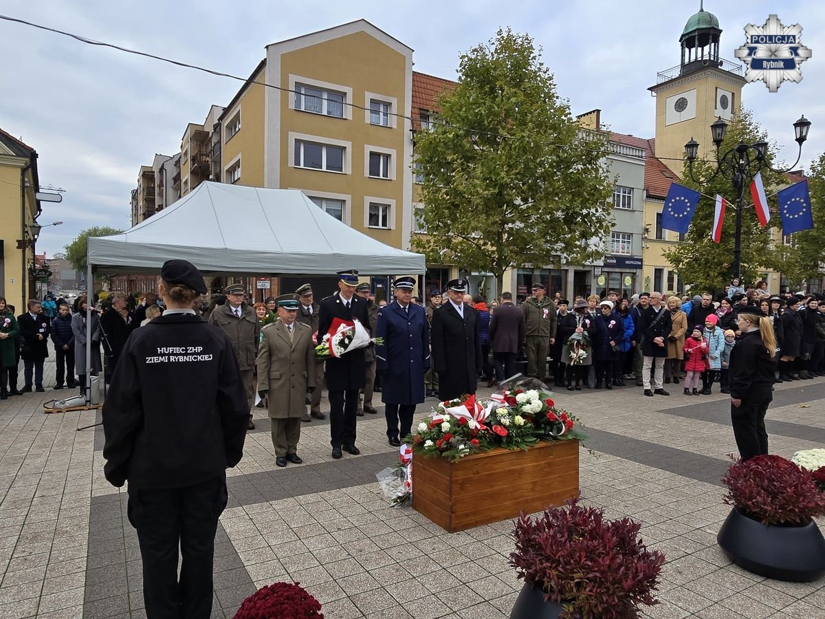 11 listopada w Rybniku obchodzone były uroczystości z okazji Narodowego Święta Niepodległości. Rozpoczęły się od Mszy Świętej w Bazylice Świętego Antoniego, skąd nastąpił przemarsz na rybnicki rynek. Tam zostały złożone kwiaty. W obchodach wziął udział Komendant Miejski Policji w Rybniku inspektor Arkadiusz Więcek. Zgromadzeni na rynku odśpiewali także Hymn Polski. W uroczystości, aby uczcić 107. rocznicę odzyskania przez Polskę niepodległości, po raz pierwszy udział wziął poczet sztandarowy rybnickiej komendy.