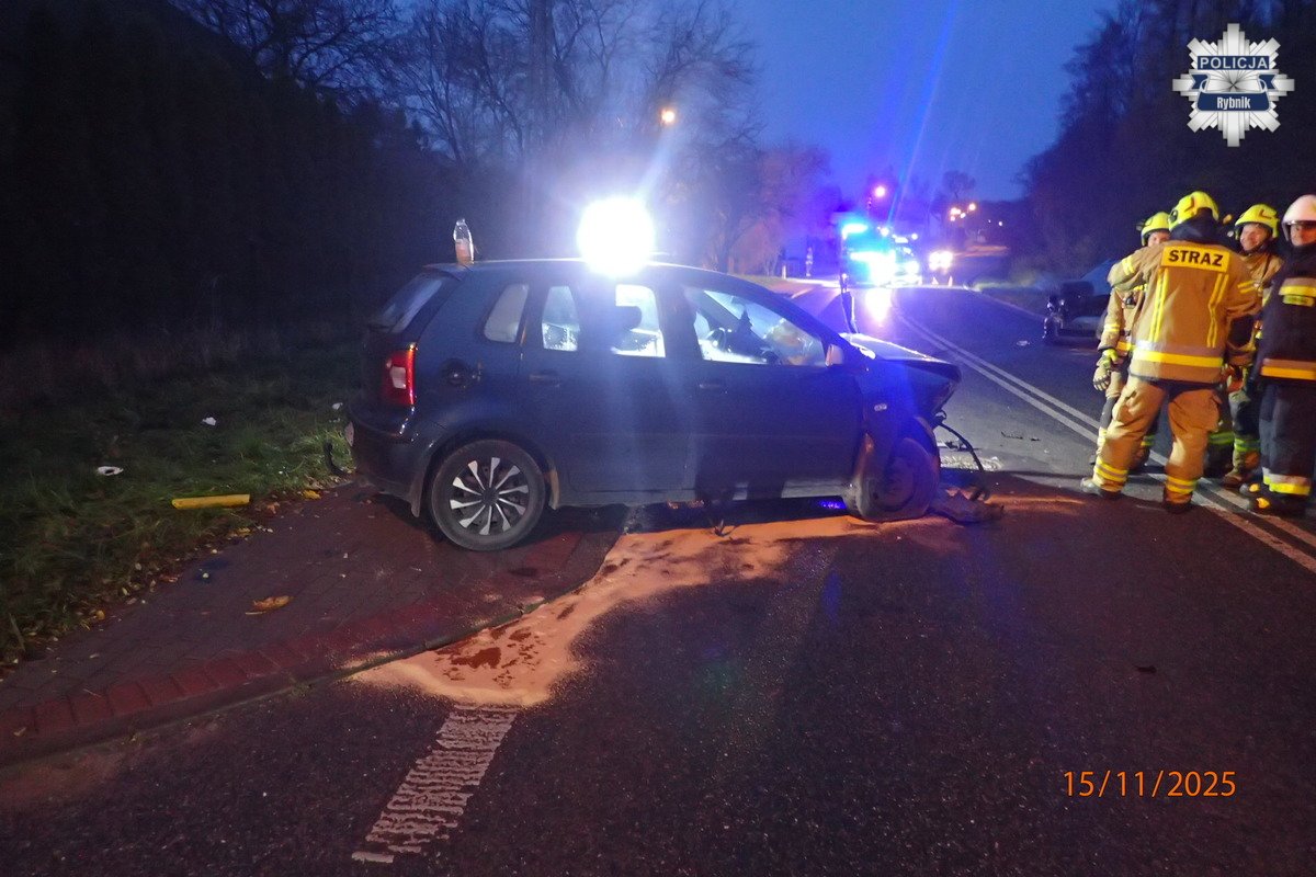 Do wypadku doszło w sobotę, przed godziną 6.00 na ulicy Sportowej w Rybniku. Jak ustalili policjanci z rybnickiej drogówki, 19-letni kierujący volkswagenem, jadąc w kierunku ulicy Raciborskiej, najprawdopodobniej zasnął za kierownicą, zjechał na przeciwległy pas ruchu i zderzył się toyotą. Do szpitala został zabrany 19-letni mieszkaniec Rybnika, kierujący volkswagenem, 21-letni pasażer, mieszkaniec powiatu rybnickiego oraz 14-letnia pasażerka tego pojazdu. Dokładne okoliczności wypadku zostaną wyjaśnione w prowadzonym przez policjantów postępowaniu przygotowawczym.