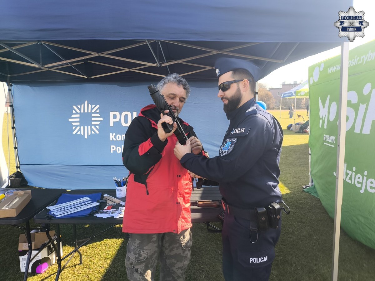 Pod namiotem profilaktycznym można było zobaczyć prawdziwą broń, porozmawiać z policjantami na temat codziennej służby, zadać wiele nurtujących pytań, a także zrobić sobie pamiątkową fotografię.