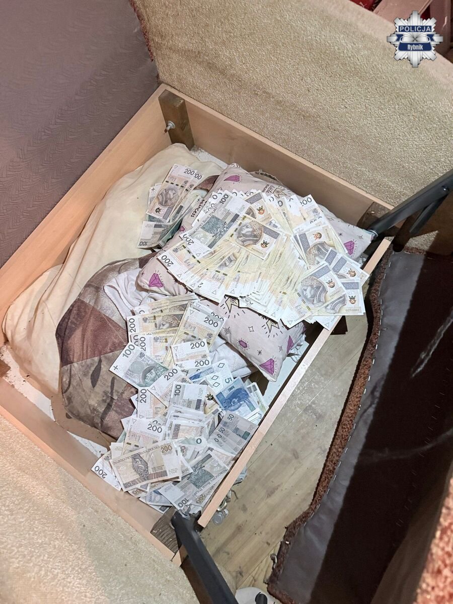 Podczas przeszukań policjanci zabezpieczyli dowody przestępczej działalności - w tym wyłudzoną gotówkę, również w obcych walutach, w łącznej wysokości około 250 tysięcy złotych.