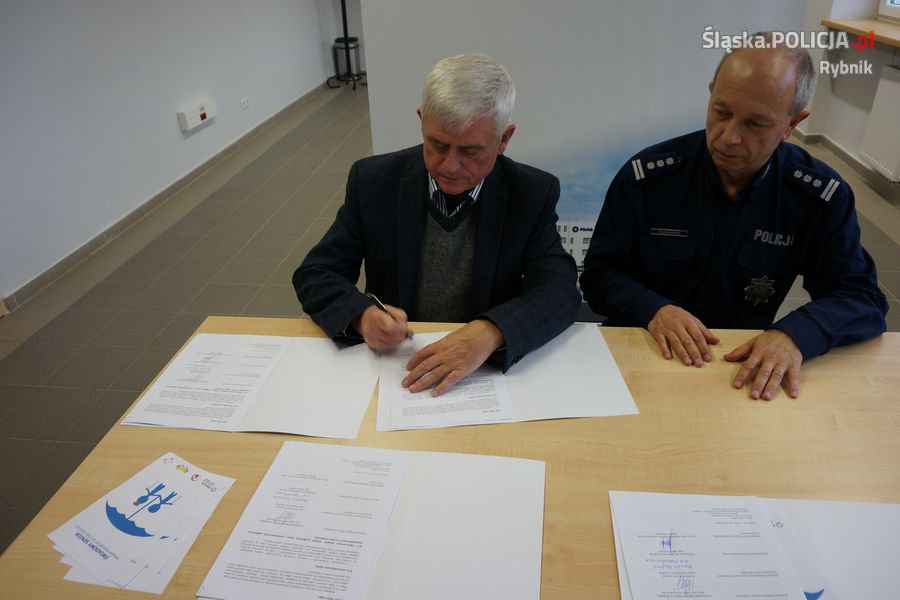 Wczoraj Komendant Miejski Policji w Rybniku insp. Teofil Marcinkowski oraz przedstawicielka Miejskiej Komisji Rozwiązywania Problemów Alkoholowych w Rybniku Mariola Kujańska, przedstawiciel Wojewódzkiego Pogotowia Ratunkowego w Katowicach Robert Ostrowski i wiceprezes ds. sportowych "Rybnickiego Klubu Ju Jitsu Sportowego" Marek Wróbel podpisali porozumienie w sprawie realizacji programu programu prewencyjnego skierowanego do osób starszych „Świadomy Senior”.